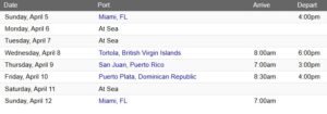 NOTE: I am NOT a cruise agent. I’m just gathering info to coordinate our trip.